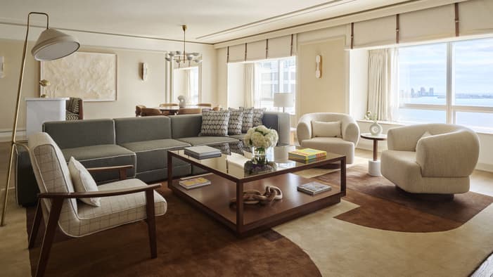 Step into the Bayfront Presidential Suite, where sweeping Biscayne Bay views, bold statement pieces and a marble bar set the tone. A spacious bedroom with a cozy sofa corner offers the perfect spot to unwind with Miami’s skyline in sight.