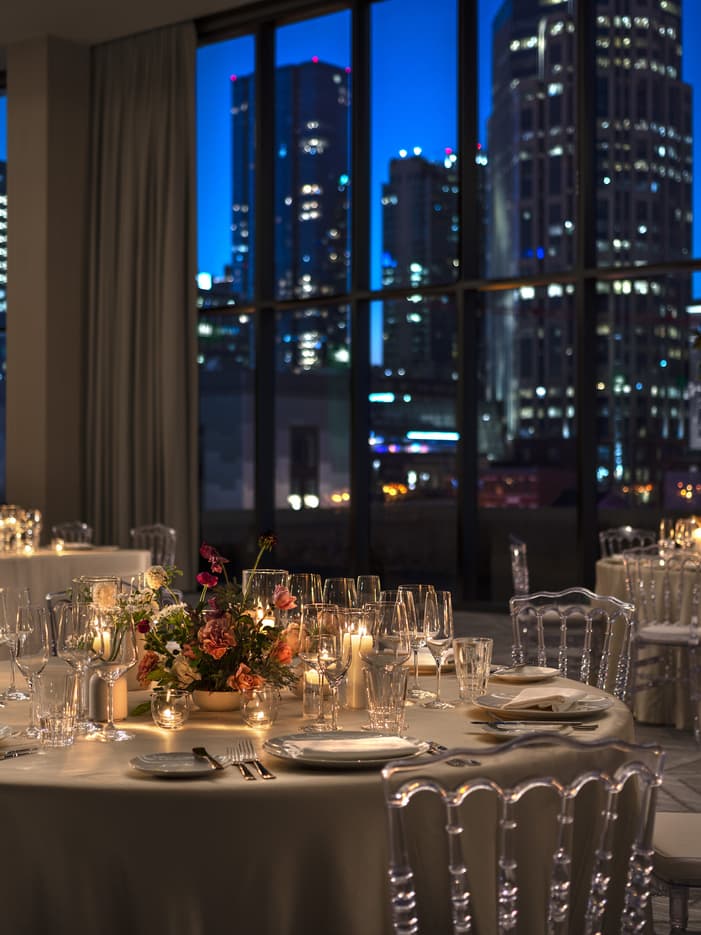 Unique Nashville VenuesSet against the backdrop of the Cumberland River and downtown Southern Broadway, our venues draw inspiration from Nashville’s rich heritage and scenic surroundings. Whether you’re planning a grand celebration or an intimate dinner, Four Seasons service ensures every detail shines.