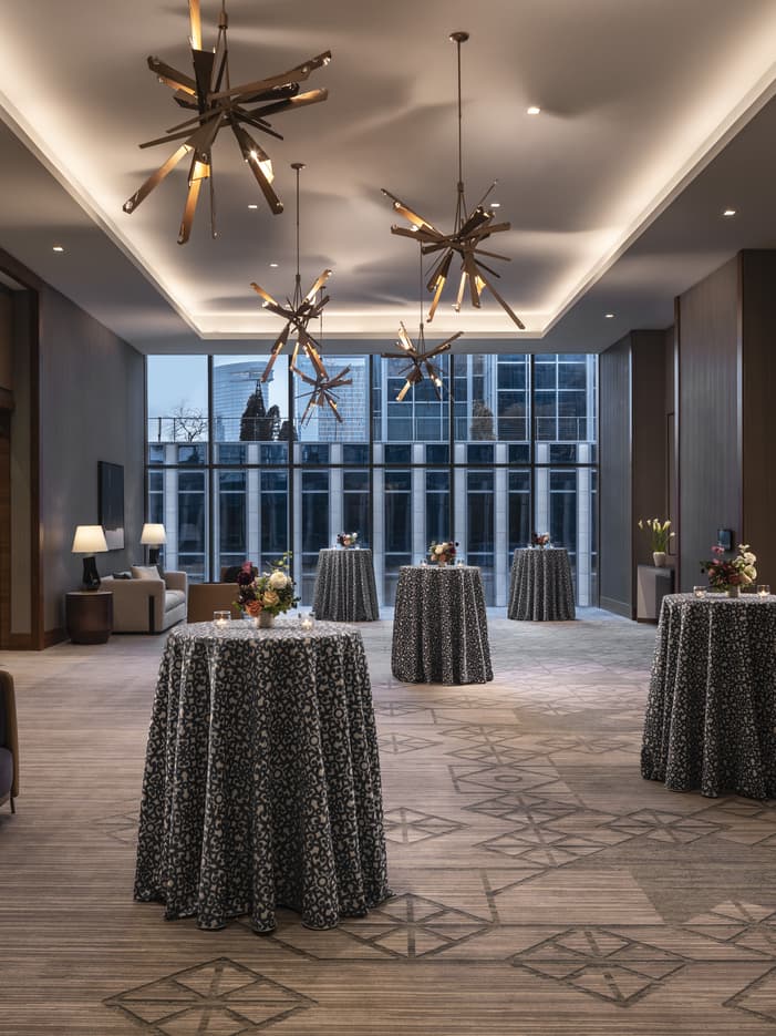 Grand BallroomWith its adaptable design and panoramic views of downtown Nashville through a wall of windows, this space boasts lofty 20-foot ceilings and an open floor plan, segmented into three distinct salons.