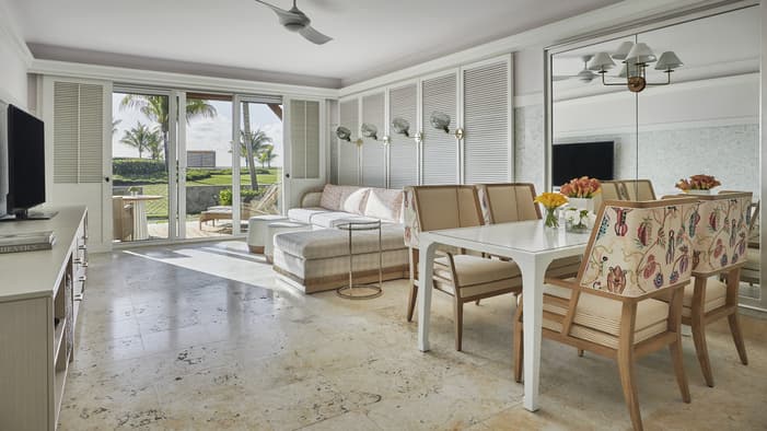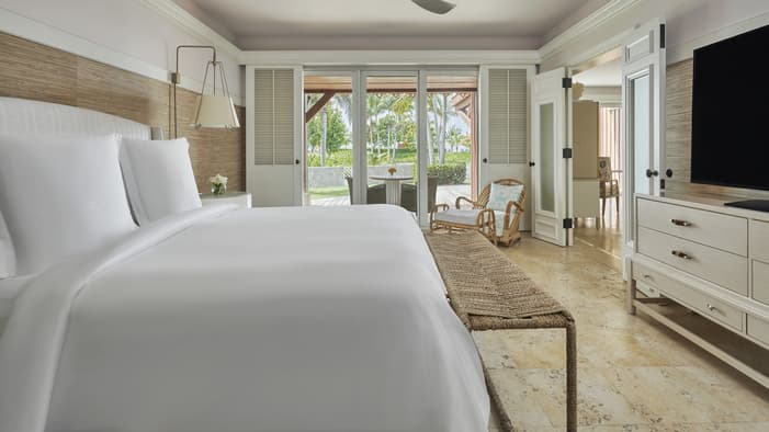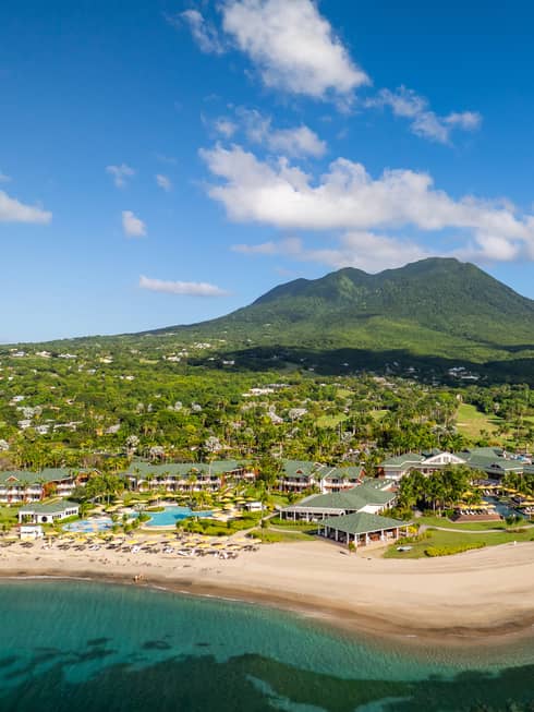 Four Seasons Resort Nevis, West Indies sits along the golden sands of Pinney’s Beach and offers more than 200 luxury accommodations, including 189 guest rooms and suites and 20 villas and estate homes. Each accommodation reflects a light, relaxed Caribbean aesthetic, and many include private pools or plunge pools and generous outdoor living spaces. Views extend across the Caribbean Sea, Nevis Peak, neighbouring St. Kitts, the golf course or lush resort gardens for a peaceful island backdrop.
