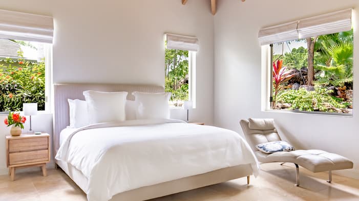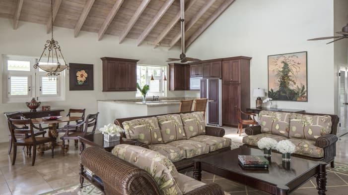 Stunning sunset views and higher elevations up Nevis Peak, these two-to-four-bedroom villas reflect the charm of a traditional island home with a mix of modern and classic decor – just a seven-minute golf cart ride to the beach.