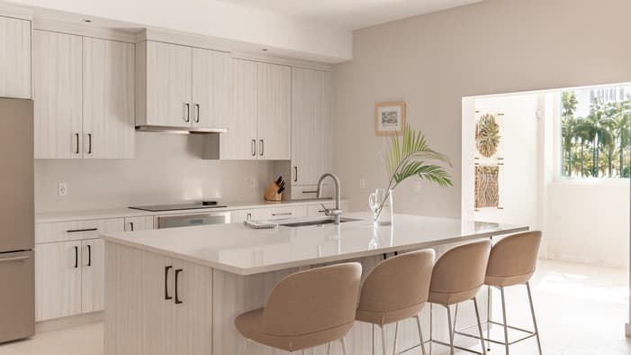 With modern touches and Caribbean influence, this charming community is immersed in the lush greenery of the golf course – just a five-minute golf cart ride to the beach.