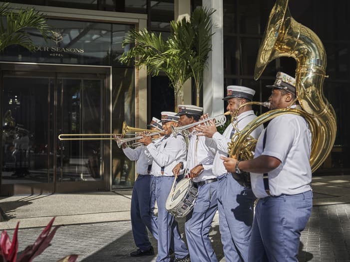 New Orleans Jazz & Heritage FestivalApril 23 – May 3, 2026Jazz Fest is a defining cultural experience of New Orleans. Held over two weekends at the Fair Grounds Race Course, about 15 to 20 minutes from Four Seasons, it brings together 13 stages of gospel, jazz, rock and more. We recommend going to the Gospel Tent for spiritual renewal, the Congo Square stage for African diaspora rhythms and the Crawfish Monica food stand. Our Concierge can arrange a private SUV transfer to the designated drop-off zones, or we can organize electric bike rentals for a ride up the Esplanade Avenue bike path. Grand Marshal VIP passes grant you upfront viewing access and access to the air-conditioned hospitality tent with private restrooms. Ask our Concierge about the Sauvage Street Gate for a faster entry.