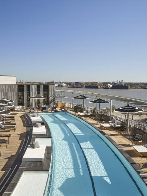 Unwind poolside with 360° views of the Mississippi River and the New Orleans skyline. With poolside dining by Chef Donald Link, cocktails and plush loungers, our rooftop oasis is the perfect escape, day or night.