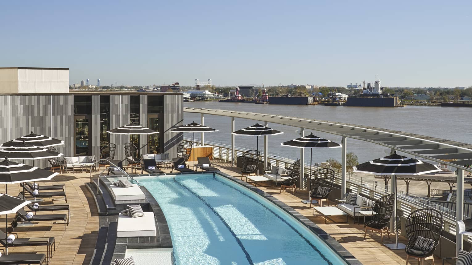 Enjoy a prime location along the Mississippi River at the start of Canal Street
