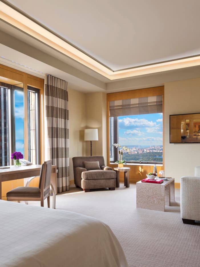 Revel in stylish touches including English sycamore panelling in this oversized suite with views of Central Park and the Hudson River.