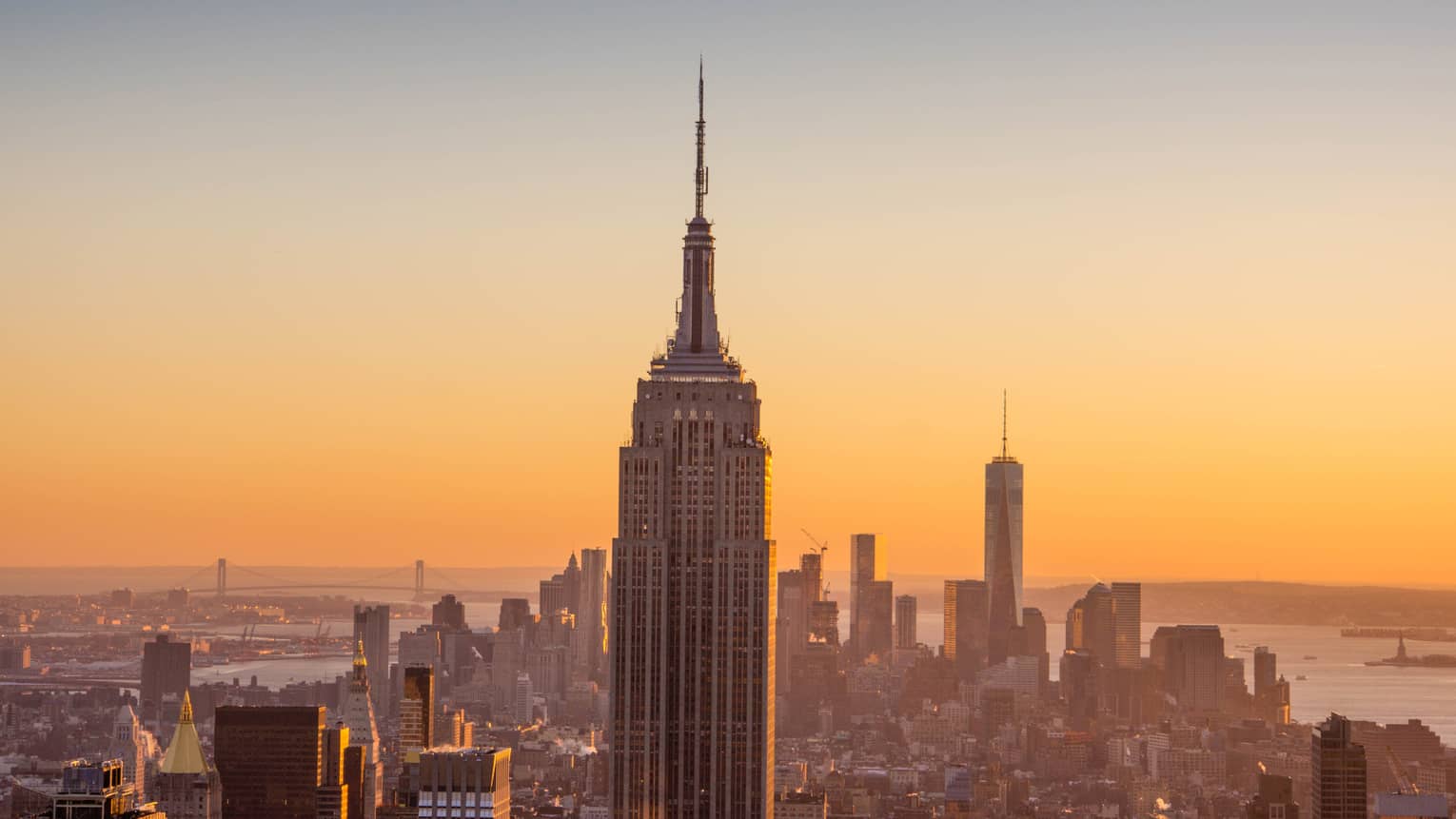Panoramic views of the Chrysler Building, downtown skyline, East River and Atlantic Ocean