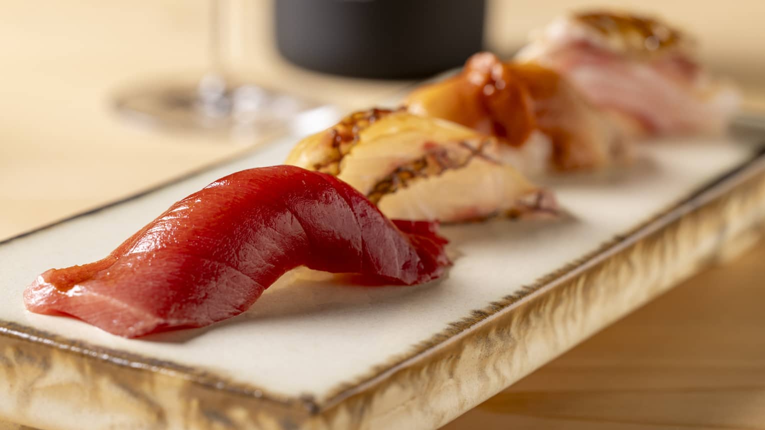 Celebrate Japan’s finest sake and craft beer each month, curated by Head Sommelier Makoto Kido, one of the few meiyo kikisake shi (honourary sake experts) in Japan. The experience is elevated by Supervising Chef Yannick Alléno and Sushi Chef Itaru Yasuda, who present an omakase menu featuring the season’s finest ingredients. In April, the focus turns to the sake of Hyogo, a region renowned for its pure Miyamizu water and premium Yamadanishiki rice, often called the king of sake rice. Known for its bold, full-bodied character with a clean, crisp finish, it represents the classic otokozake style. We have carefully selected exceptional bottles that reflect the spirit of the Tanba master brewers and the rich depth created by Hyogo’s unique climate and tradition. Lunch: JPY 26,000; dinner: JPY 55,000.