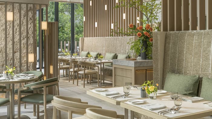 Discover fine dining in Osaka at Four Seasons, home to some of the city’s most acclaimed restaurants. Ascend to the 37th floor to savour authentic Cantonese cuisine at Jiang Nan Chun or indulge in omakase at Sushi L’Abysse Osaka Yannick Alléno, all while enjoying 360˚ city views. Unwind at Bar Bota with signature cocktails or immerse yourself in the lively atmosphere of our French-inspired bistro, Jardin.