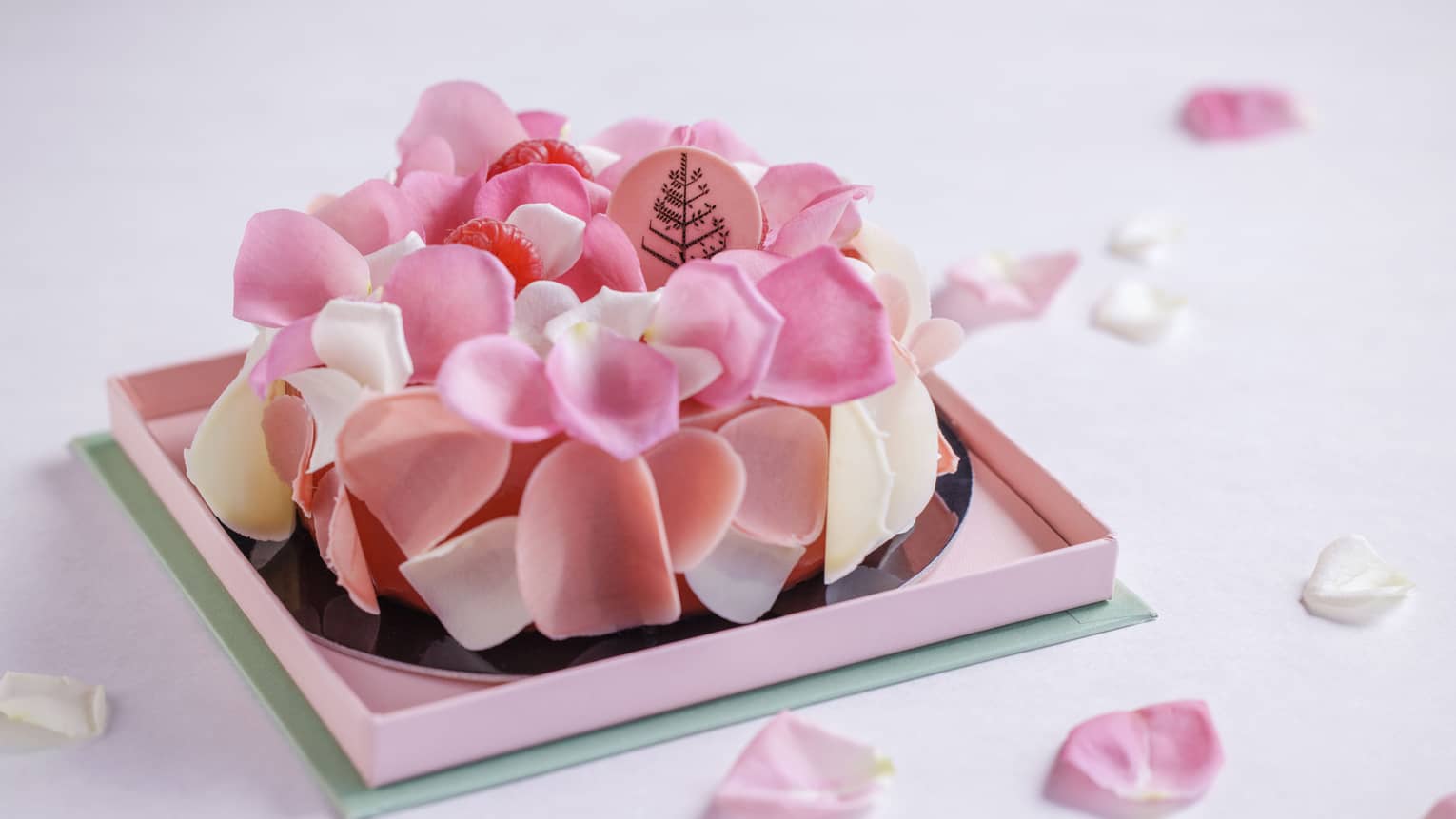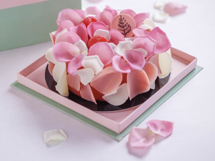 Our Gâteau Bouquet is a speciality of est’s Pastry Chef Michele Abbatemarco. Opening the gift box reveals an edible bouquet of raspberries and rose petals cloaked in strawberry glaze. Filled with the scent of roses, each bite brings new surprises: sweet vanilla, bright limoncello sponge and tart wild strawberries. 13 centimetres: JPY 6,500.