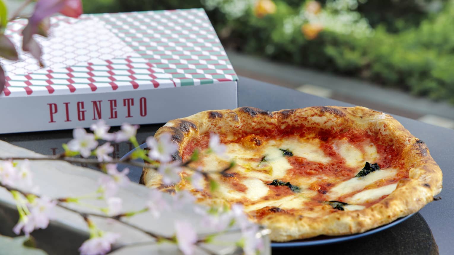 Bring the taste of Italy home with PIGNETO Takeaway Pizza – freshly hand‑tossed by our Specialty Pizza Chef Alessandro de Leo using the finest ingredients. Choose from classics like Marinara and Bufalina or favourites like Cinque Formaggi and Burrata. Perfect for a lunch, dinner or anytime indulgence. Price from JPY 3,500. Pickup available daily, 11:45 am to 9:00 pm. Please order at least 45 minutes before your preferred pickup time. Available year round.