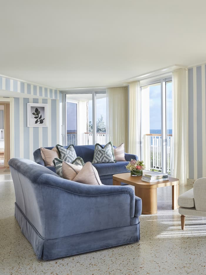In our grandest, most desirable residential-style suite, find an authentically coastal lifestyle with its first-floor location welcoming in the fresh sea breezes. Relax in two oceanfront bedrooms, a comfortable media room along with private, direct access to the pool and the pristine beach just steps beyond, plus enjoy the option to connect to an additional guest room for a three-bedroom sanctuary.