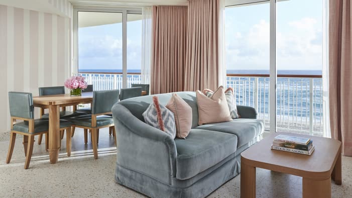 Welcome to your oasis, where you can take in ocean views from the comfort of your open and airy living and dining room, then fall asleep to the sounds of the Atlantic from your oceanfront bedroom. This charming suite offers the option to connect to an additional guest room for a two-bedroom retreat.