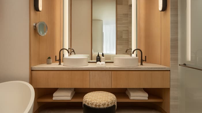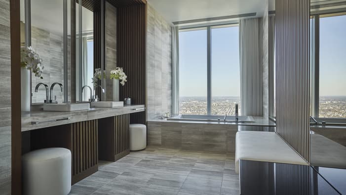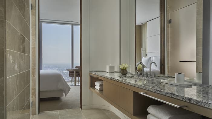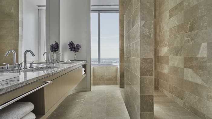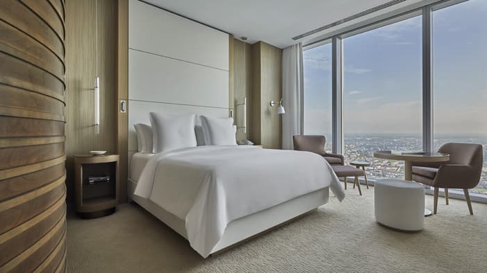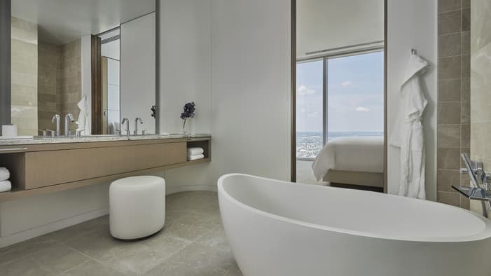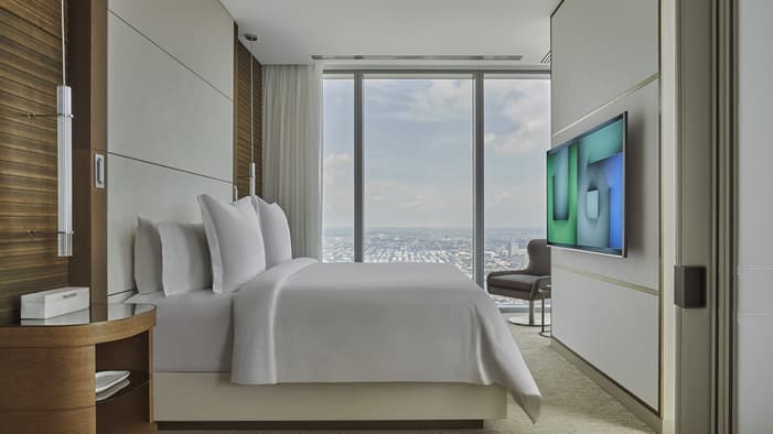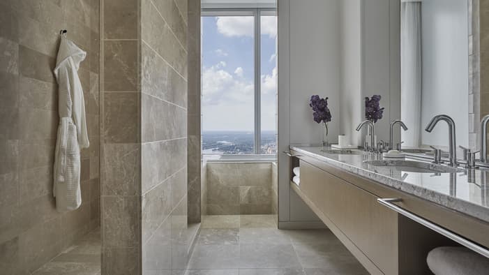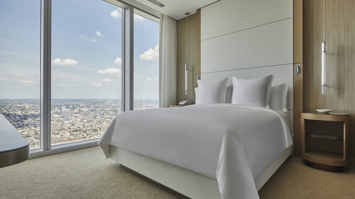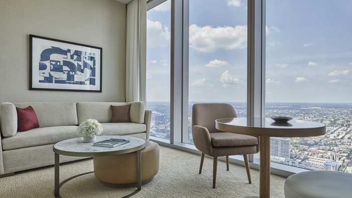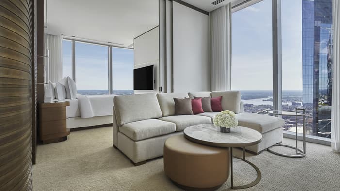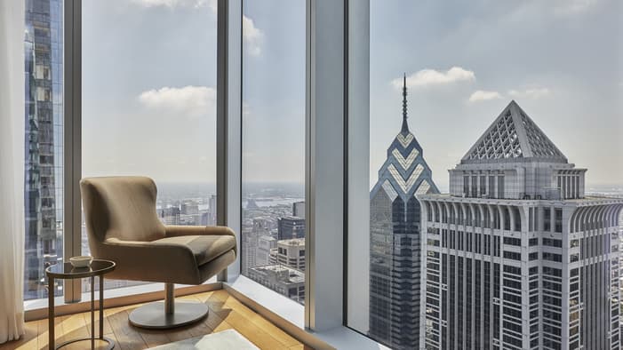Discover unparalleled luxury and sophistication at Four Seasons Hotel Philadelphia. Located in the heart of Center City atop the city’s tallest tower, our accommodations redefine urban elegance. From sleek suites with panoramic views of the city’s historical landmarks, to stylish hotel rooms outfitted with bespoke furniture, each space offers a haven of comfort and refinement. Experience unrivaled hotel suites in Philadelphia, designed for an unforgettable stay in the City of Brotherly Love.