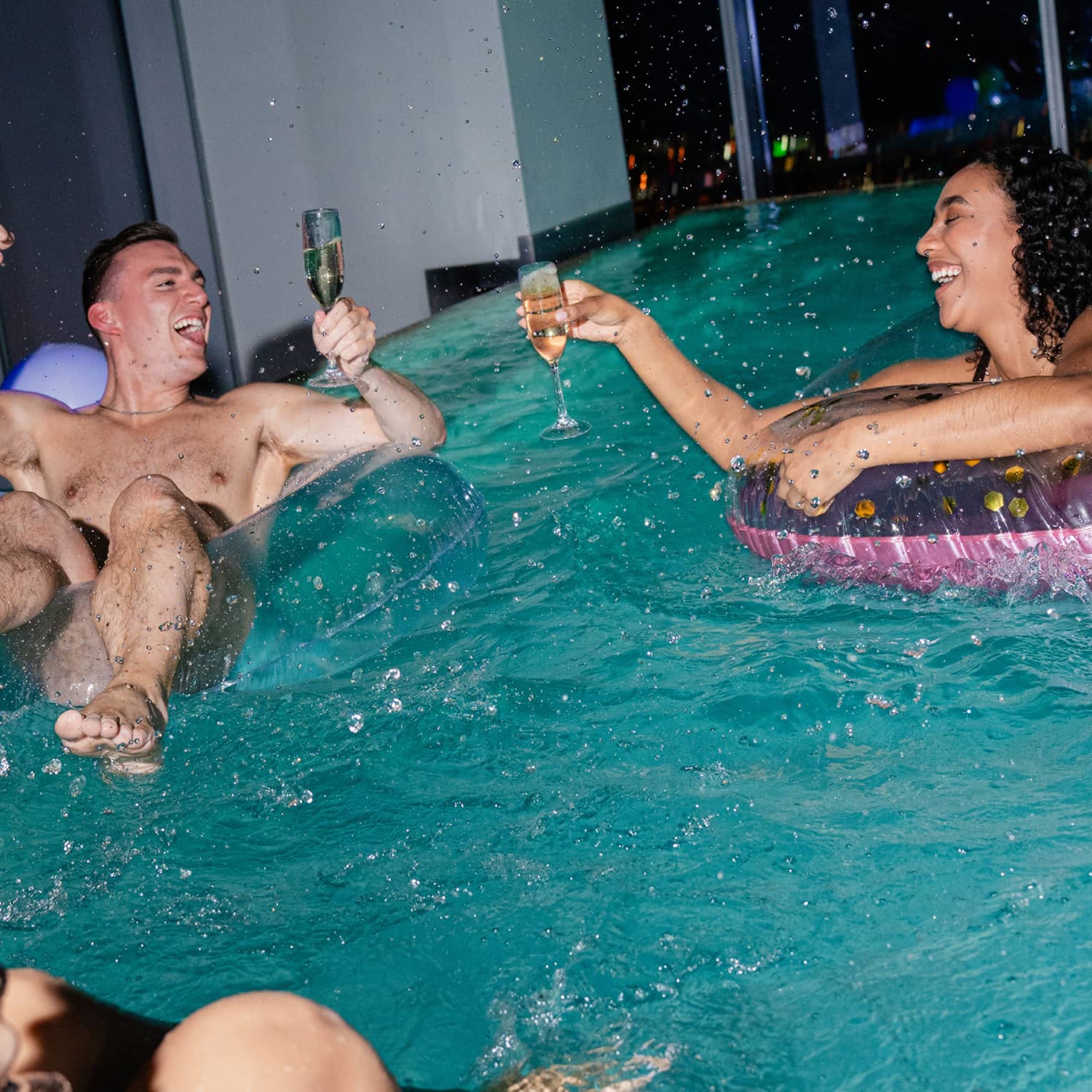 Swim Under the Stars Swim under the stars in a private night swim in our infinity-edge pool. Unwind on the pool deck or enjoy access to the Spa’s sauna and steam room before refreshing yourself with our invigorating ice fountain. All guests receive hydrating face masks from Knesko, resulting in a radiant glow as you relax and unwind in the height of sophistication. Guest room reservation is not required.