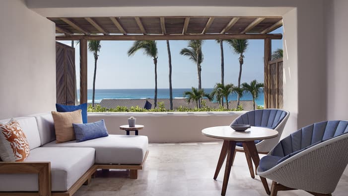 Our modern Mexican casitas in Punta Mita offer inviting sitting areas and private terraces that overlook lush tropical gardens or the Pacific.