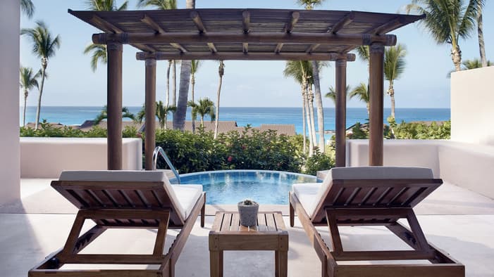 Discover our spacious and modern one- and two-bedroom suites in Punta Mita, featuring living rooms and private terraces with plunge pools, overlooking lush tropical gardens or the Pacific. Ideal for extra space and privacy.