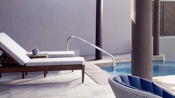 Our newly renovated, spacious and modern suites with living rooms, private terraces and plunge pools are ideal for extra space and privacy.