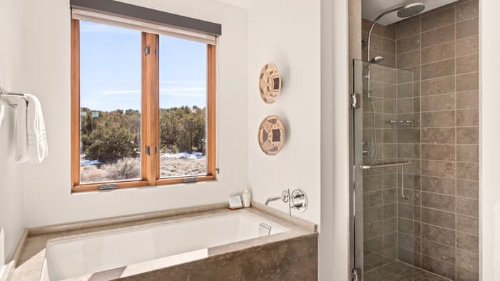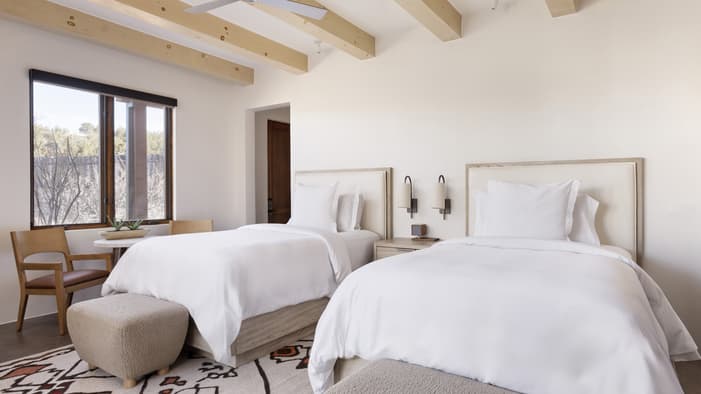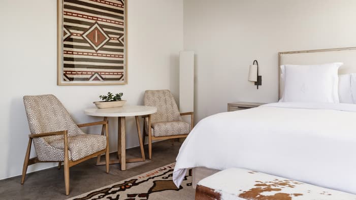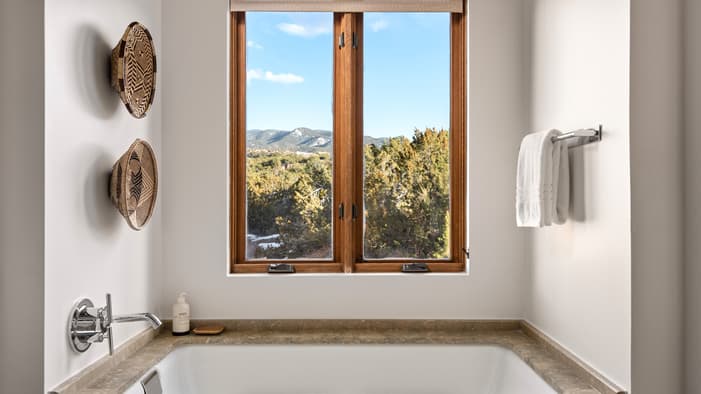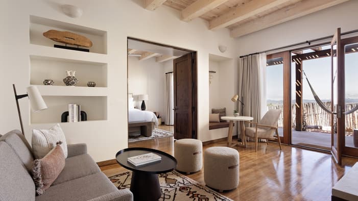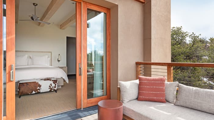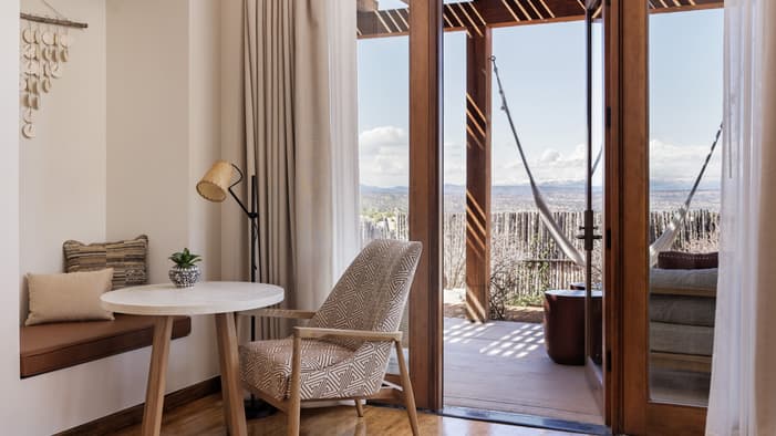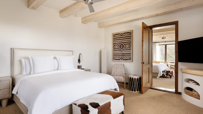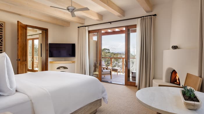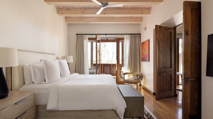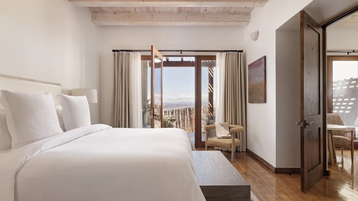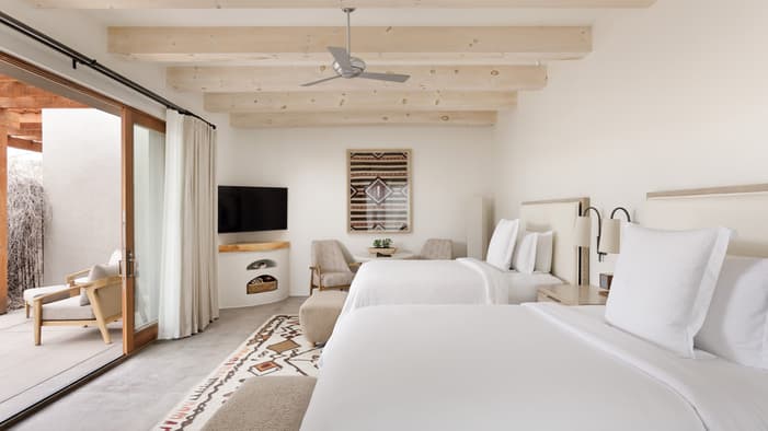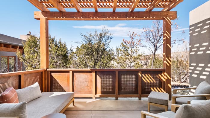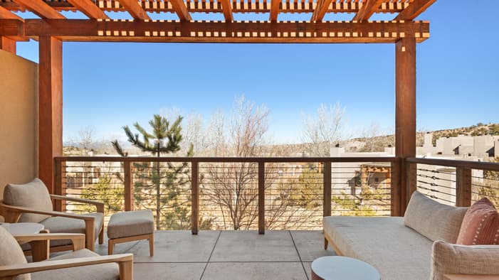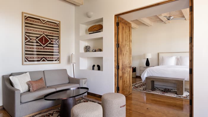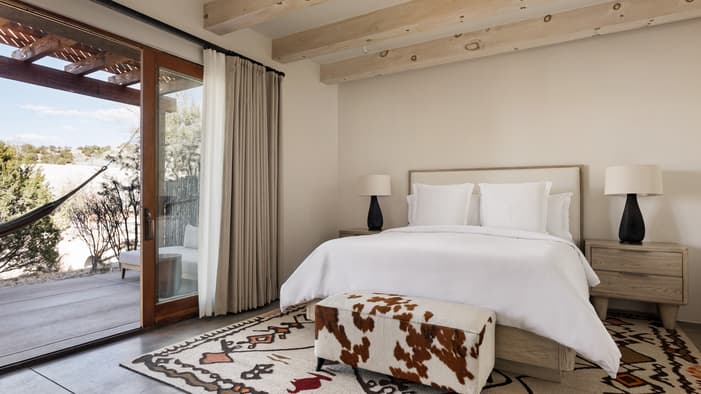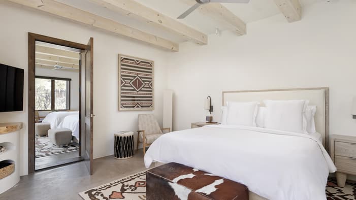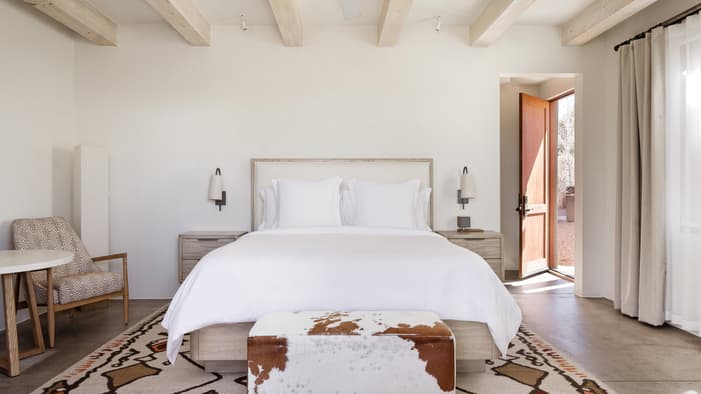 Each casita features a traditional New Mexico, wood-burning kiva fireplace with locally sourced piñon firewood, as well as a private outdoor patio or balcony, to take in the stunning desert sunrises and sunsets.