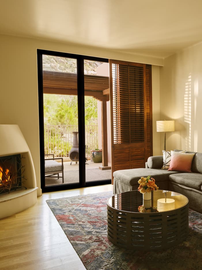 Multiple daily dips in your private plunge pool are encouraged, unless you’d rather recline on the furnished patio with a good book. A chiminea fireplace creates warmth and comfort during desert evenings. The newly renovated bathroom features a deep soaking tub as well as a spacious shower, leading to the outdoor garden shower beyond.