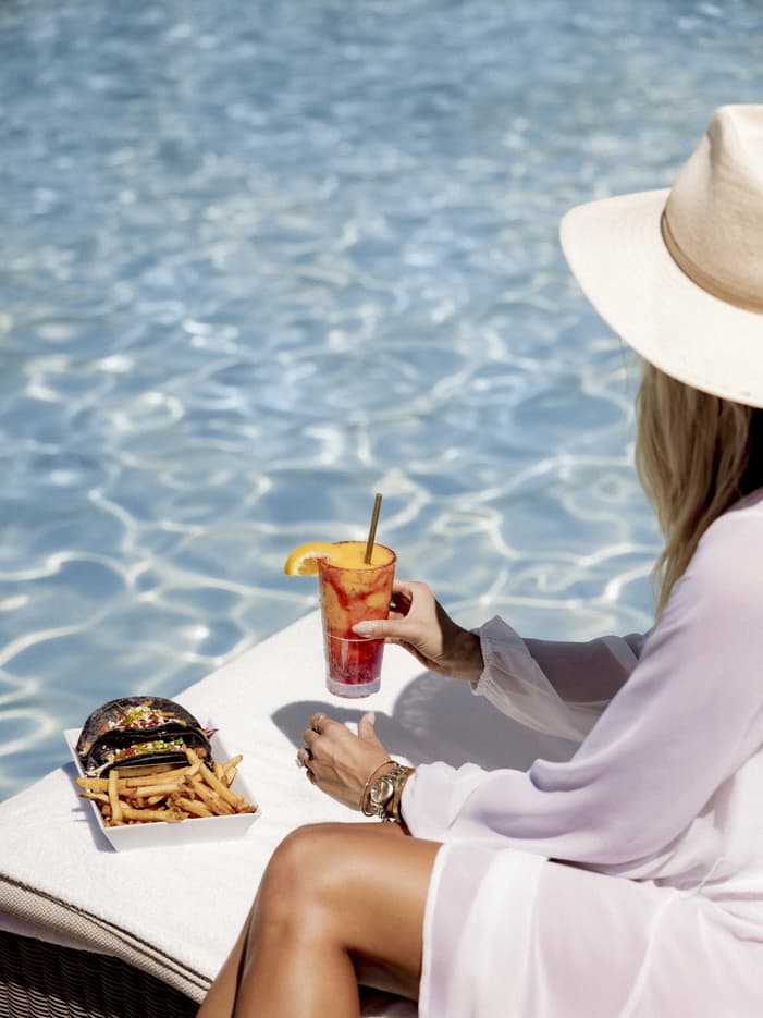Unwind together beside the Resort’s pools, where sun-soaked days and quiet moments create a relaxed, romantic setting for couples seeking effortless desert luxury.