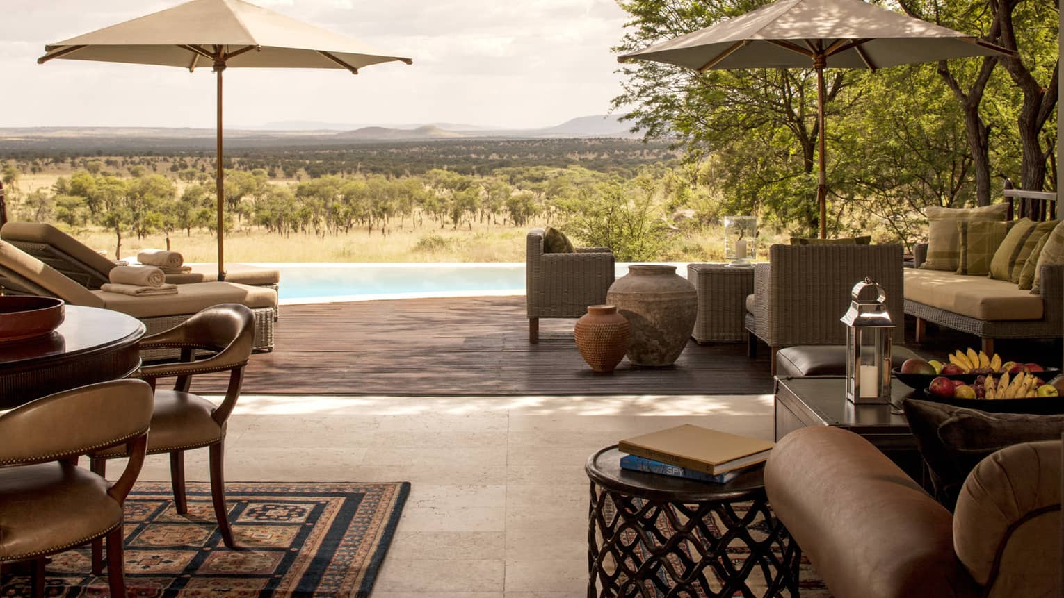 Personal OasisGo for a secluded swim beneath the boundless Tanzanian sky in your private infinity-edge pool, or simply relax on the deck and watch the animals go by.