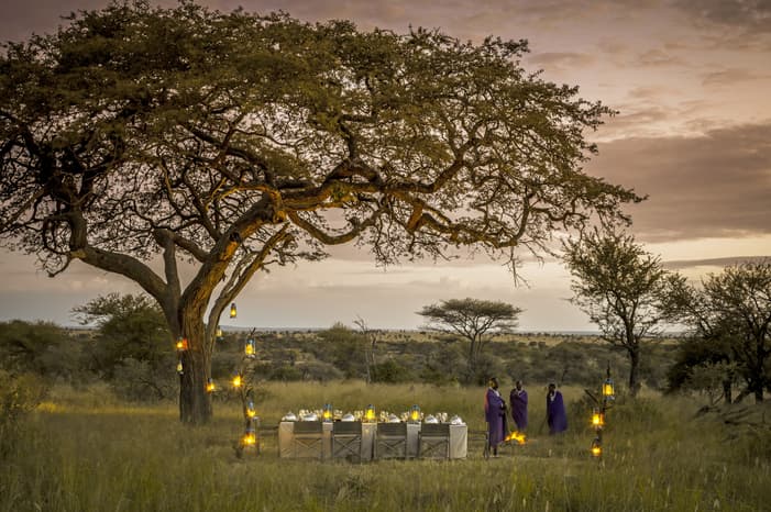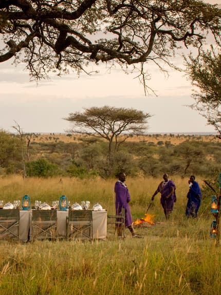 Sit down for a torchlit barbecue dinner in the middle of Serengeti National Park, sharing stories around the bonfire and gazing up at the stars under the watchful protection of Maasai tribespeople.1 / 3