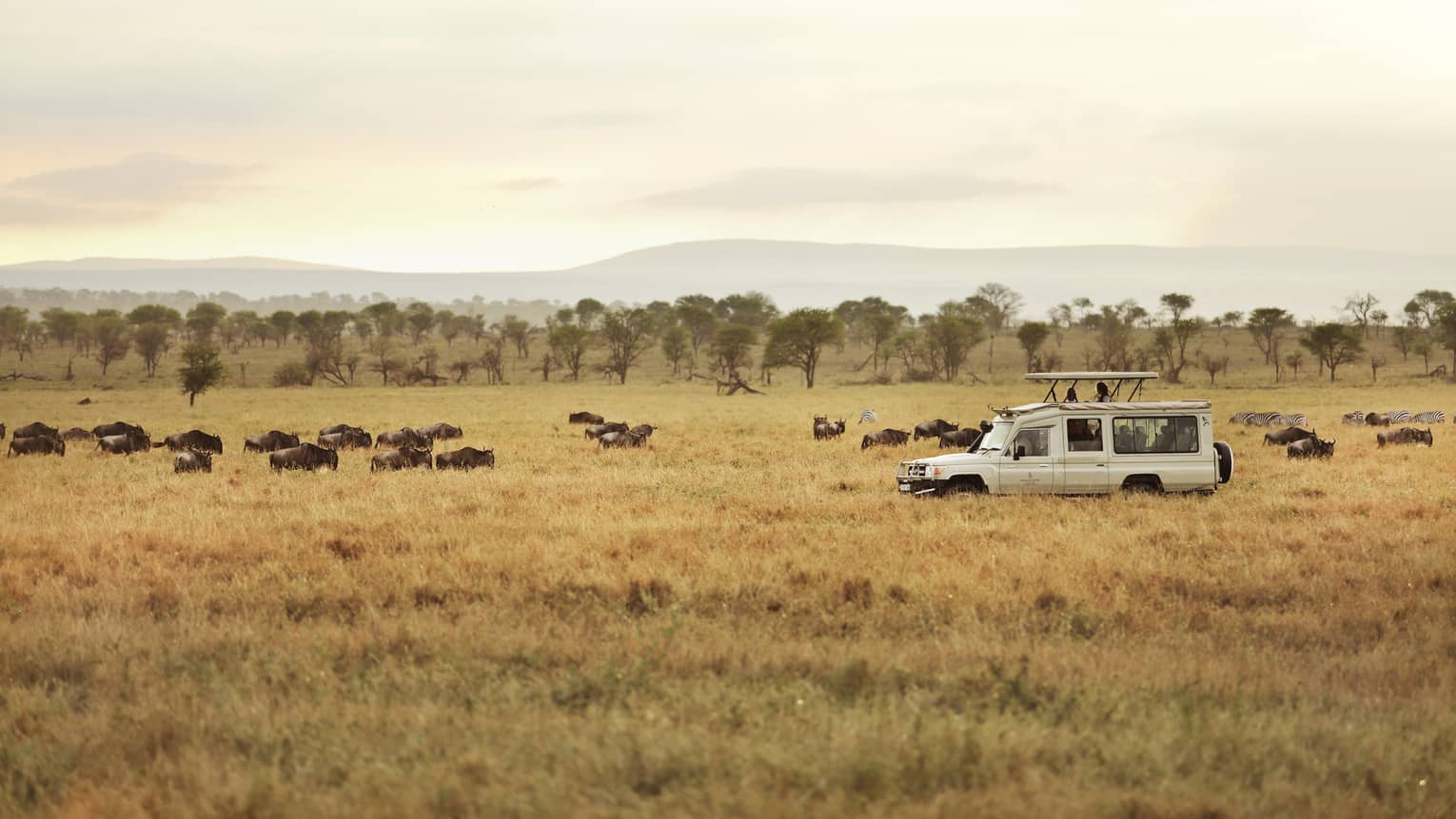 A region with seasonality directly linked to the movements of the Great Migration, the Western Corridor is typically where the wildebeest are found from late May to early July, although your expert driver-guide can advise on a more precise location at the time of your visit. When the wildebeest are in the Western Corridor, a full-day game drive can allow you to view the Migration scattered in the woodland against a hilly backdrop. This region is also where the wildebeest rut (mating season) takes place and where the herds must cross the tree-lined Grumeti River, reputedly home to some of the largest crocodiles in Africa.
