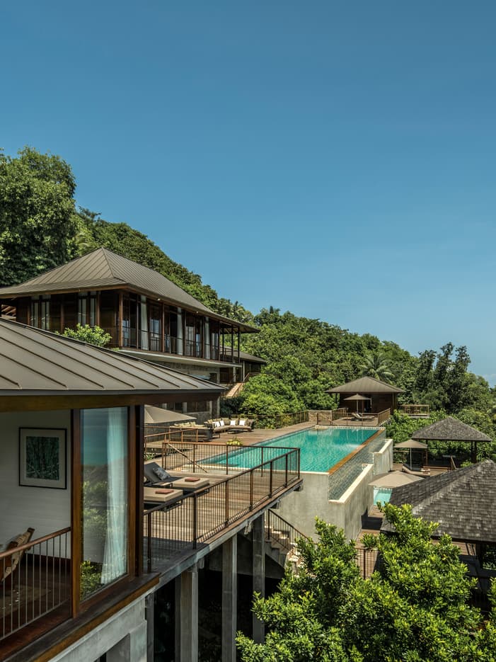 1,900–2,500 m2 (20,451–26,910 sq. ft.) including large outside deck with private infinity pool. Upper section of the Resort