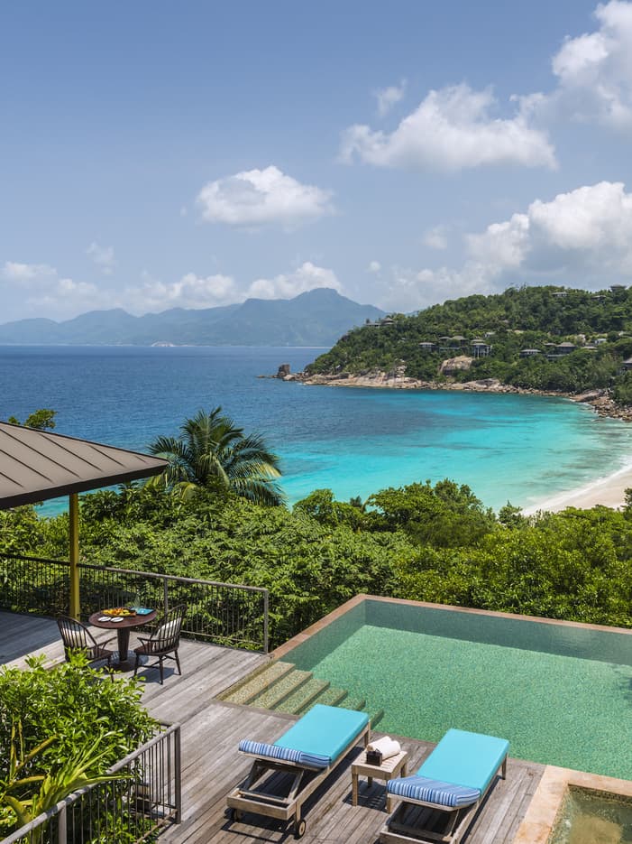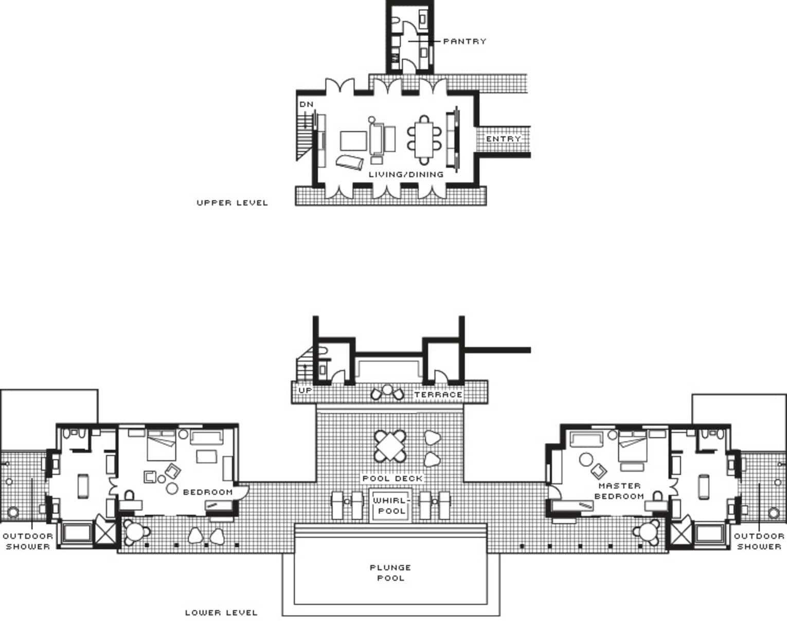 Each of the suite’s two bedrooms is housed within its own pavilion, separated by a private pool and deck where you can come together for a swim or toast the sunset as often as you choose.
