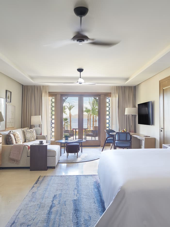 Boasting our very best view of the Red Sea, this spacious guest room offers the latest Four Seasons luxury, including sleek modern décor and state-of-the-art technology. Relax in the indoor living area or outdoors on the balcony or terrace. Your bathroom is a spa-like sanctuary, aglow with sunlight.