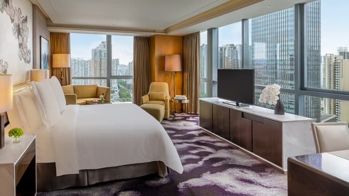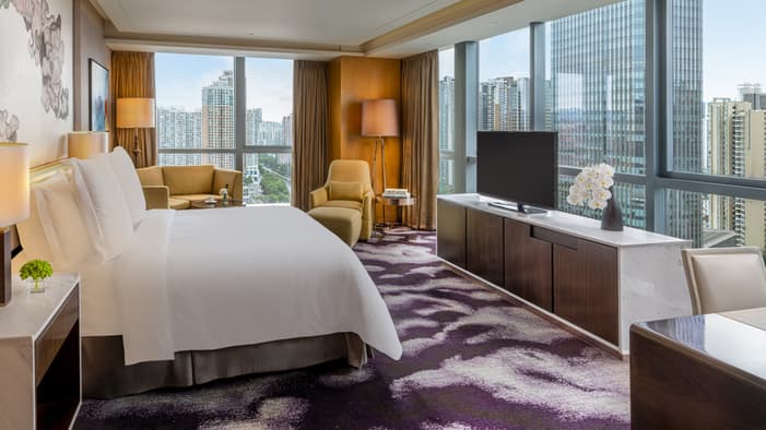 Occupying a prized location in the Futian District, our Shenzhen luxury Hotel offers seamless access to the Shenzhen Convention and Exhibition Centre, as well as Ping An Financial. Designed with a contemporary, residential touch, it blends seamlessly with the futuristic, international energy of the city. Whether you’re visiting for business or leisure, relax with a treatment at our Spa, take a dip in our indoor or outdoor pools, then join us for an evening of fine dining at Zhuo Yue Xuan Cantonese restaurant.