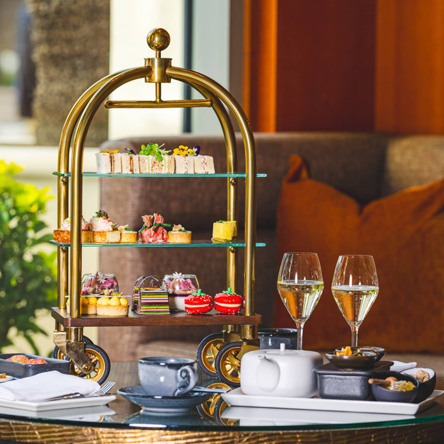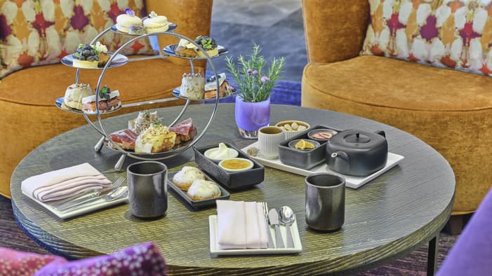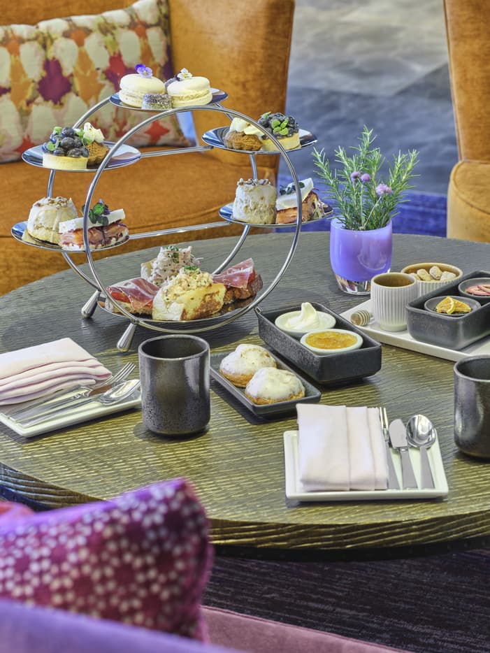 Afternoon Tea Enjoy [esc] lounge's signature Afternoon Tea that promises a delightful blend of savoury and sweet treats crafted to perfection. The curated menu showcases the culinary artistry of our Hotel's talented pastry team. Indulge in a selection of savoury delights, such as a mini lobster roll and profiterole with smoked salmon mousse, and sweet offerings, such as the rhubarb and rye scone with strawberry jam and clotted cream. Learn More