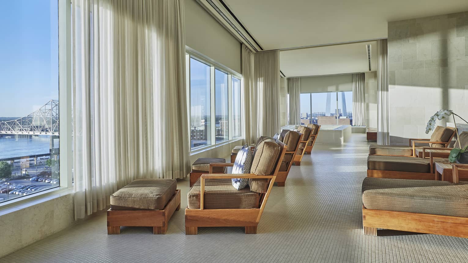 Arch-View RoomA wall of windows lets you wake up to inspiring views of the Gateway Arch in these bright and airy rooms.