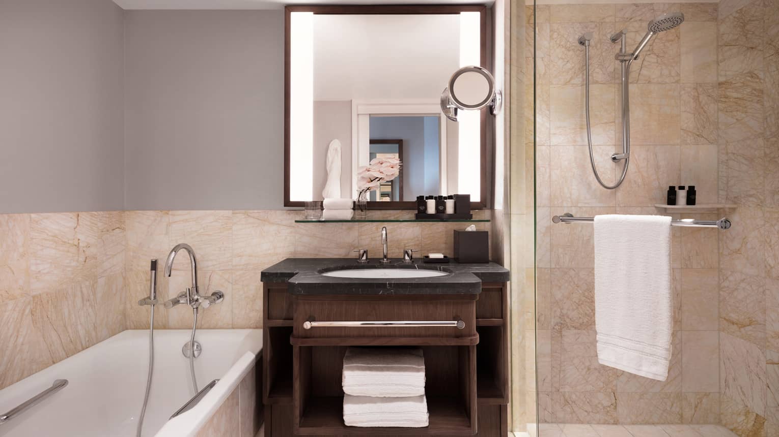 - Spacious marble bathroom