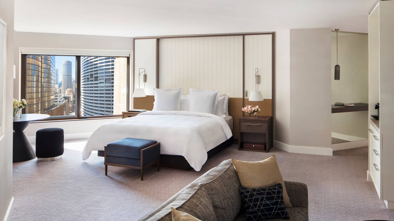 Designed to reflect the vibrant spirit of Sydney, these City Studio Suites at Four Seasons Hotel Sydney combine contemporary style with panoramic Sydney skyline and city views. Enjoy the sparkle of the city lights from your elegant lounge, relax with a nightcap and experience a sophisticated retreat in the heart of Sydney’s central business district.
