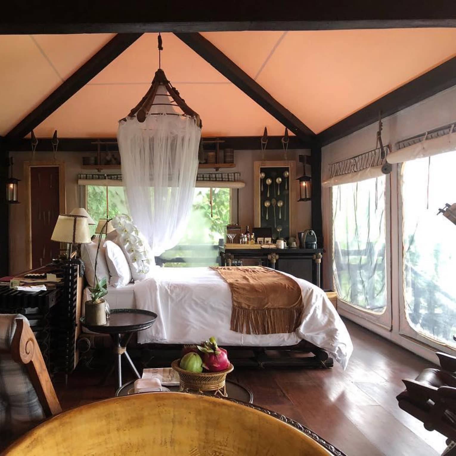 Interact with nature, explore mountain trails or bamboo jungles, and unwind in luxury tents.