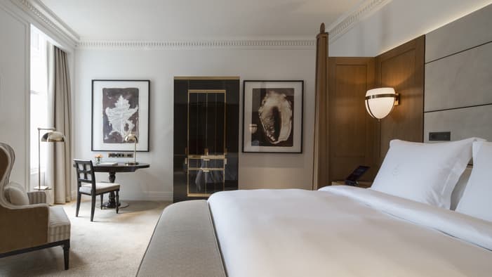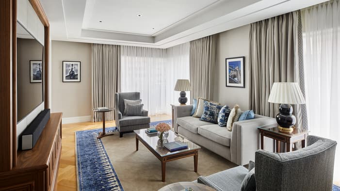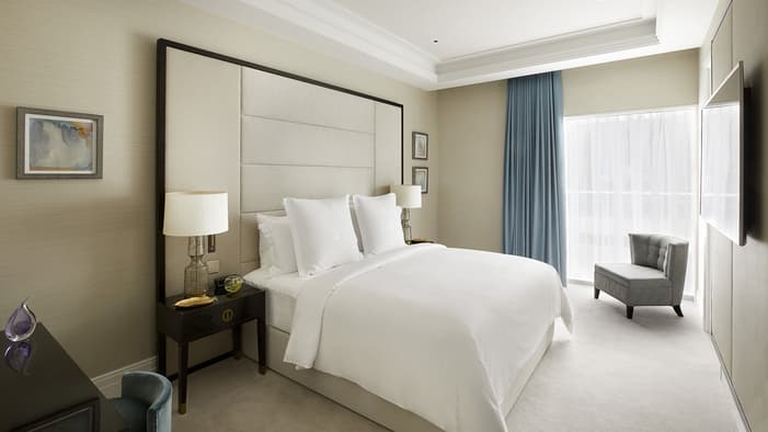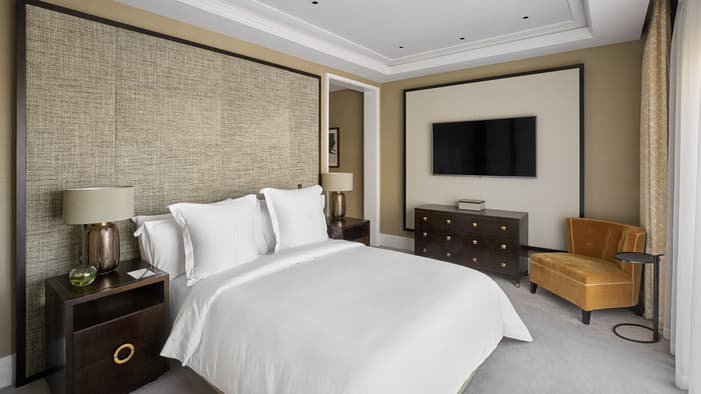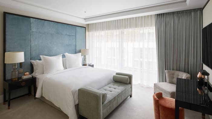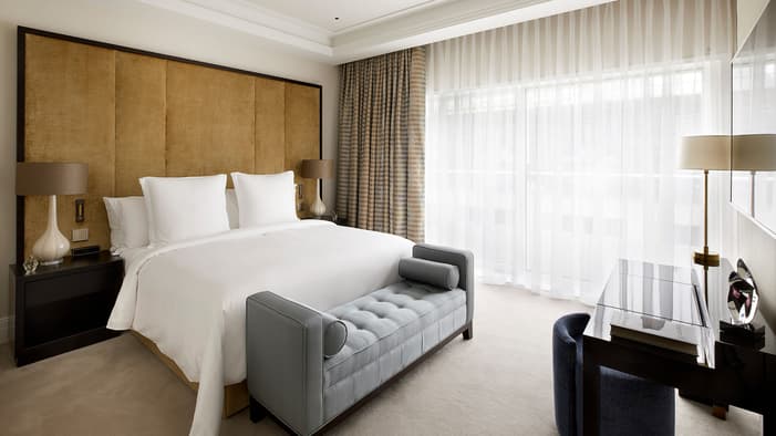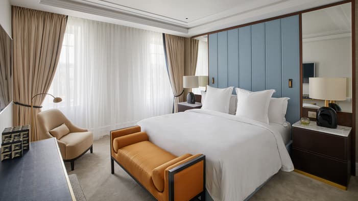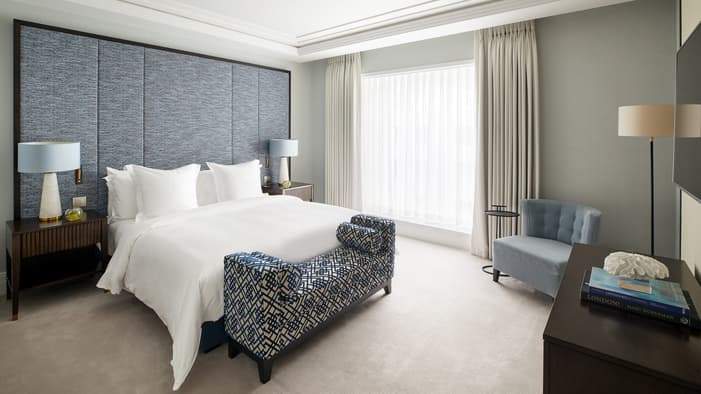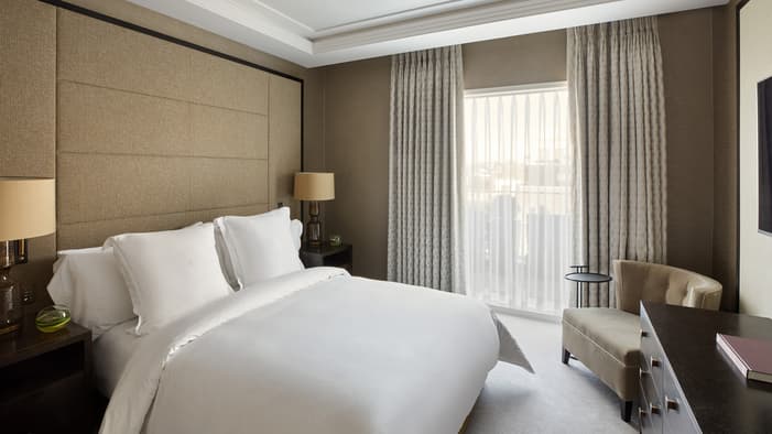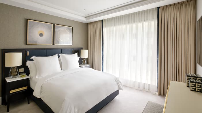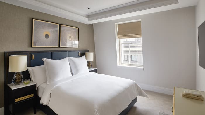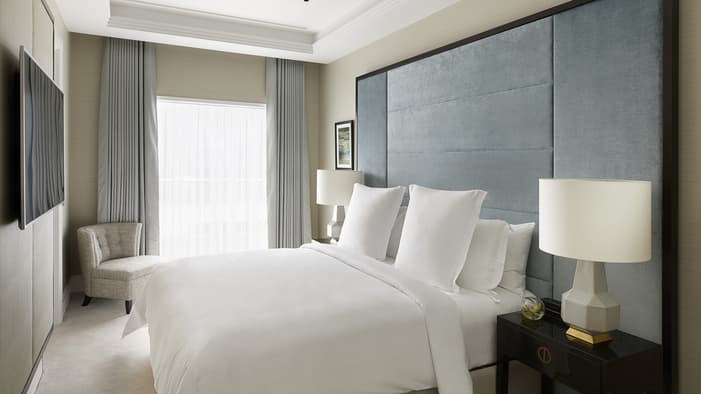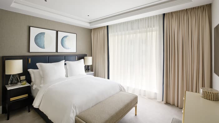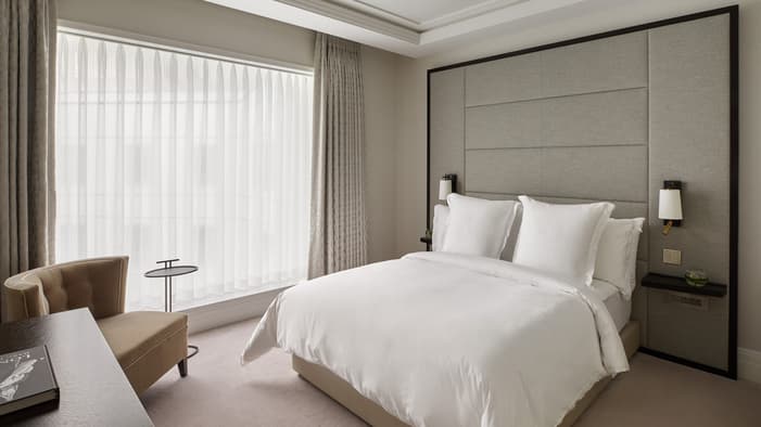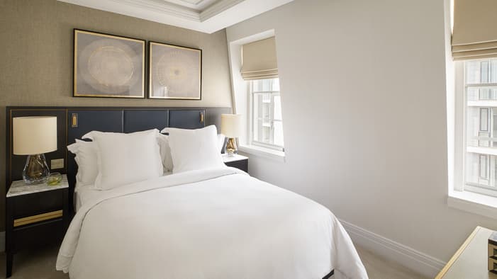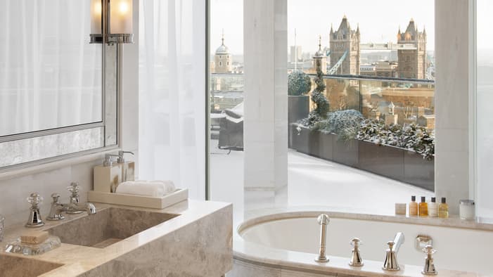 Discover our guest rooms, luxury suites and residences near Tower Bridge at Four Seasons Hotel London at Tower Bridge. Experience refined comfort in our 89 guest rooms, 11 luxury suites and 35 residences, each offering contemporary design and views of the City of London. Ideal for business travellers, couples and families, our accommodations provide exceptional comfort and convenience for unforgettable stays. Our expansive specialty suites place you at the heart of the area’s grand history, offering generous layouts that are perfect for extended stays or travelling with loved ones – all while showcasing the elegance of our Tower Bridge suites.