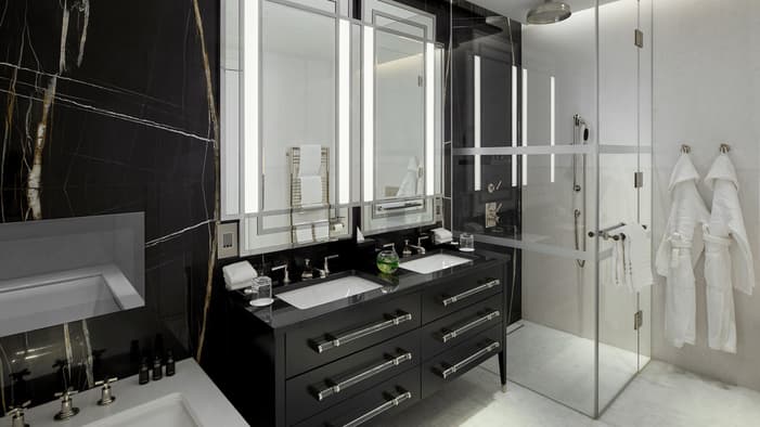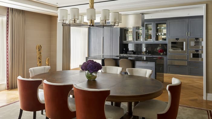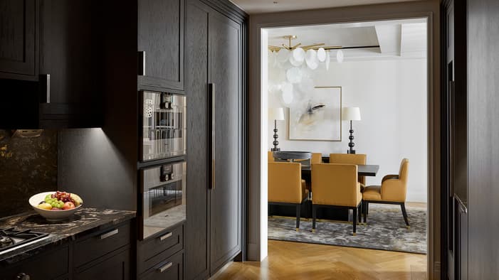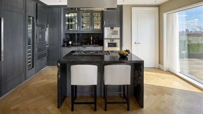 Individually-designed hotel residences range from one to four bedrooms, some with private terraces and views of the Tower of London and Tower Bridge. They offer open-concept living and dining areas as well as fully-equipped kitchens complete with Gaggenau appliances.
