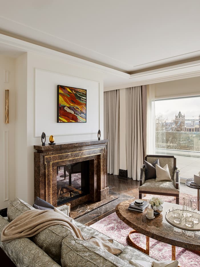 Experience ultimate luxury in our Skyline Penthouse, a four-bedroom hotel residence in London. Perfect for long stays, the expansive hotel residence features a private gym, cinema room, office, garden oasis and a wraparound rooftop terrace perfect for entertaining, with breathtaking views of Tower Bridge and The Tower of London.