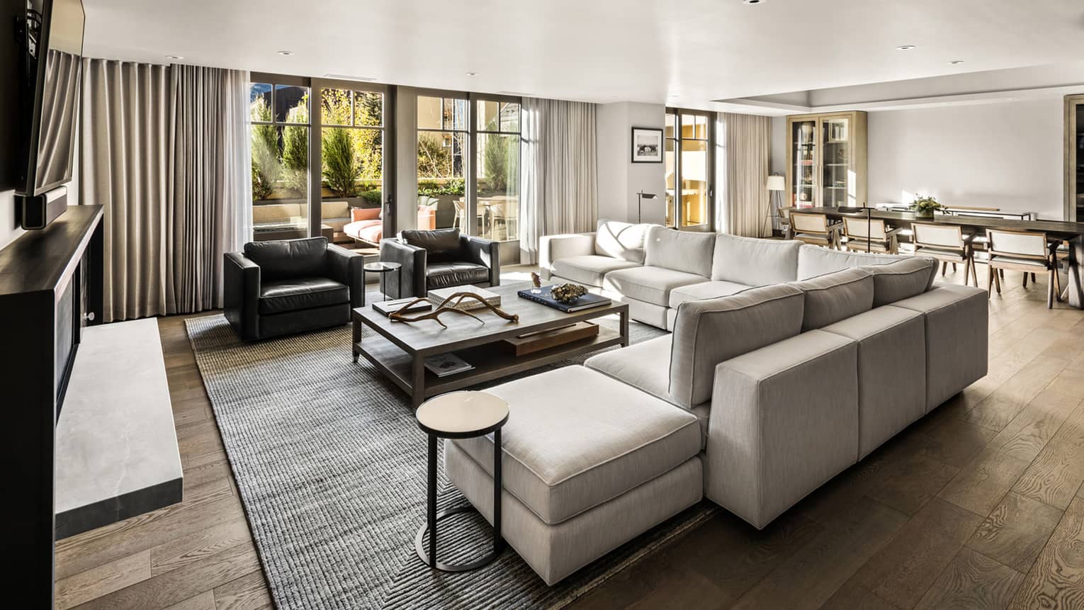 A beautiful, contemporary private residence, this five-bedroom, five-bathroom, two-storey residence boasts a minimalistic design highlighting the open, spacious floorplan. The unit welcomes you into a great room joining the kitchen, dining and living rooms which open onto a sprawling terrace, complete with a hot tub and connected bar. The master bedroom is located on the main floor while the other four bedrooms are on the second floor, each with their own private bathroom. This residence is ideal for large families, multi-generation families and groups of friends travelling together.