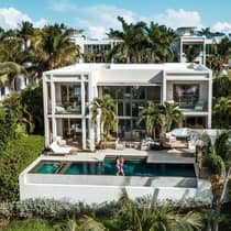 With soaring views of both ocean and bay, this residence offers your group a living area with plenty of room to relax, an outside dining area, an infinity pool, and a private ocean-view gym.