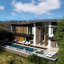 Feel perfectly at home in this chic residence, nestled within abundant gardens. Share time together in the ample indoor-outdoor living space and gourmet kitchen, or lounge by your infinity pool.