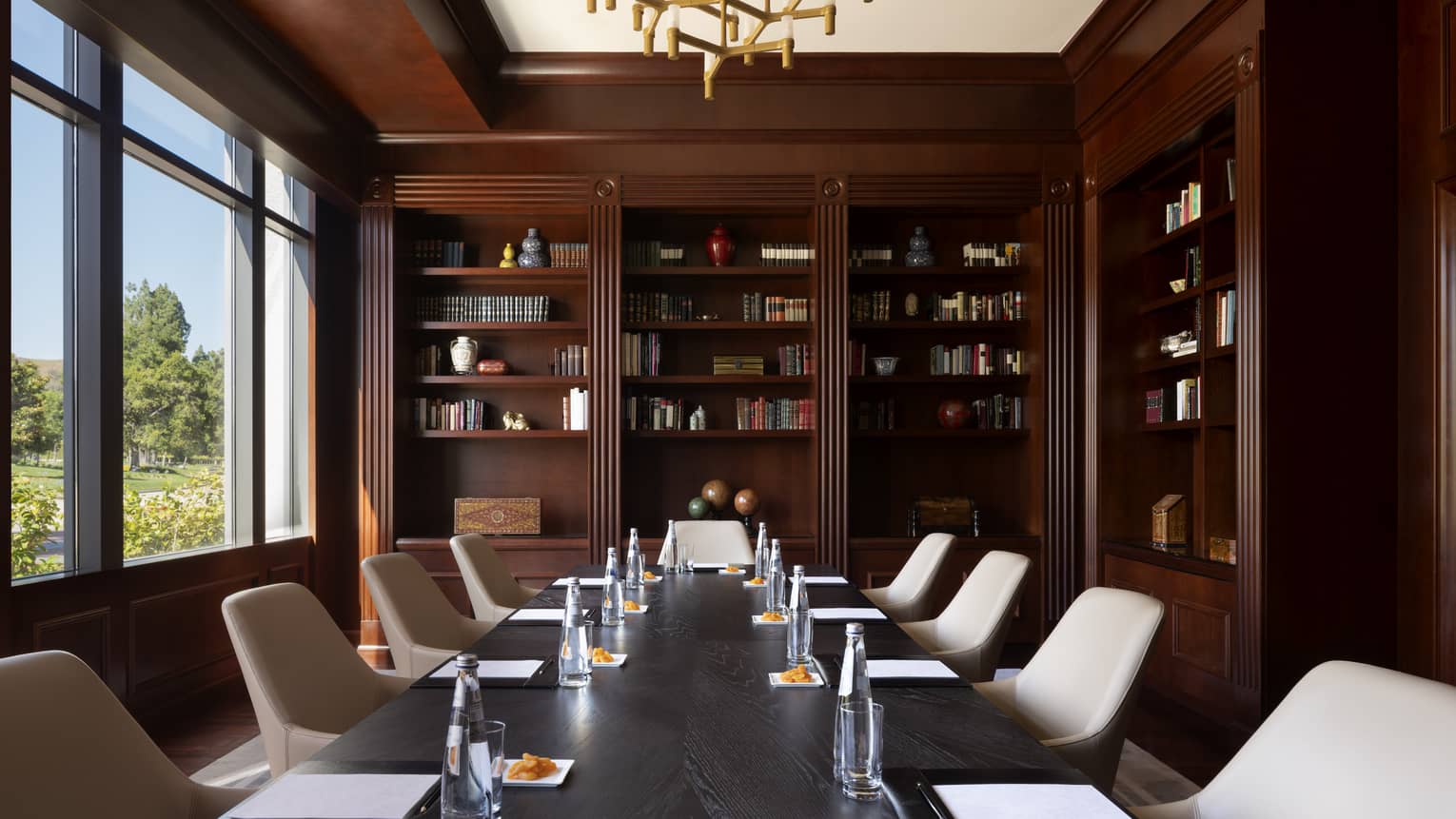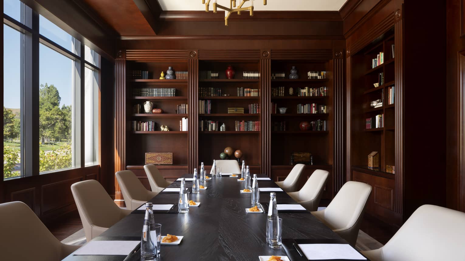 Aptly named with book-lined shelves, this sophisticated space offers an intimate venue featuring a permanent boardroom table, making it ideal for executive gatherings.