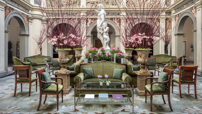 漫步于佛罗伦萨最大的私人花园 — 一个由雕像、喷泉和百年古树构成的宁静天堂,这里距离大教堂广场仅 10 分钟步程。观光后返回您的套房,墙上的壁画装饰与原有的建筑特色自然相融,让您在独特的艺术氛围中惬意休憩,舒心入睡。我们历史悠久的奢华酒店距离佛罗伦萨的文化中心仅数步之遥,拥有米其林星级意大利餐厅,以及灵感源于当地特色的水疗中心,您可以在这里度过一个全然放松的午后。