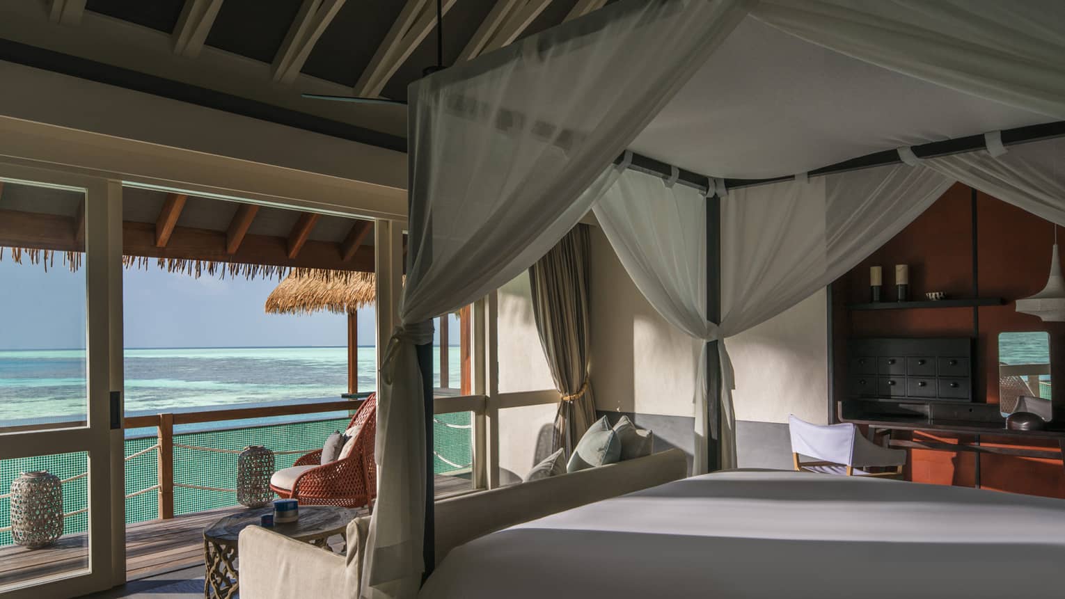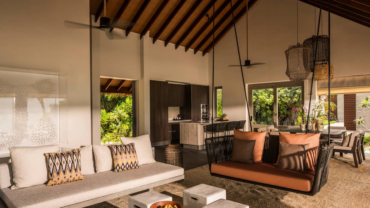 沃亚瓦的海滨小屋涌动着这座岛屿跳动的脉搏。您可以在林荫下的露天起居室放松休憩、去健身房挥洒活力、安坐于图书馆静心阅读、或是前往阁楼休息室打一局台球,也可以派对狂欢直至深夜;您还可以让孩子担任小助手,协助大厨烹煮晚餐,自己则好好偷闲一番,欣赏无限湛蓝的生态区海域。