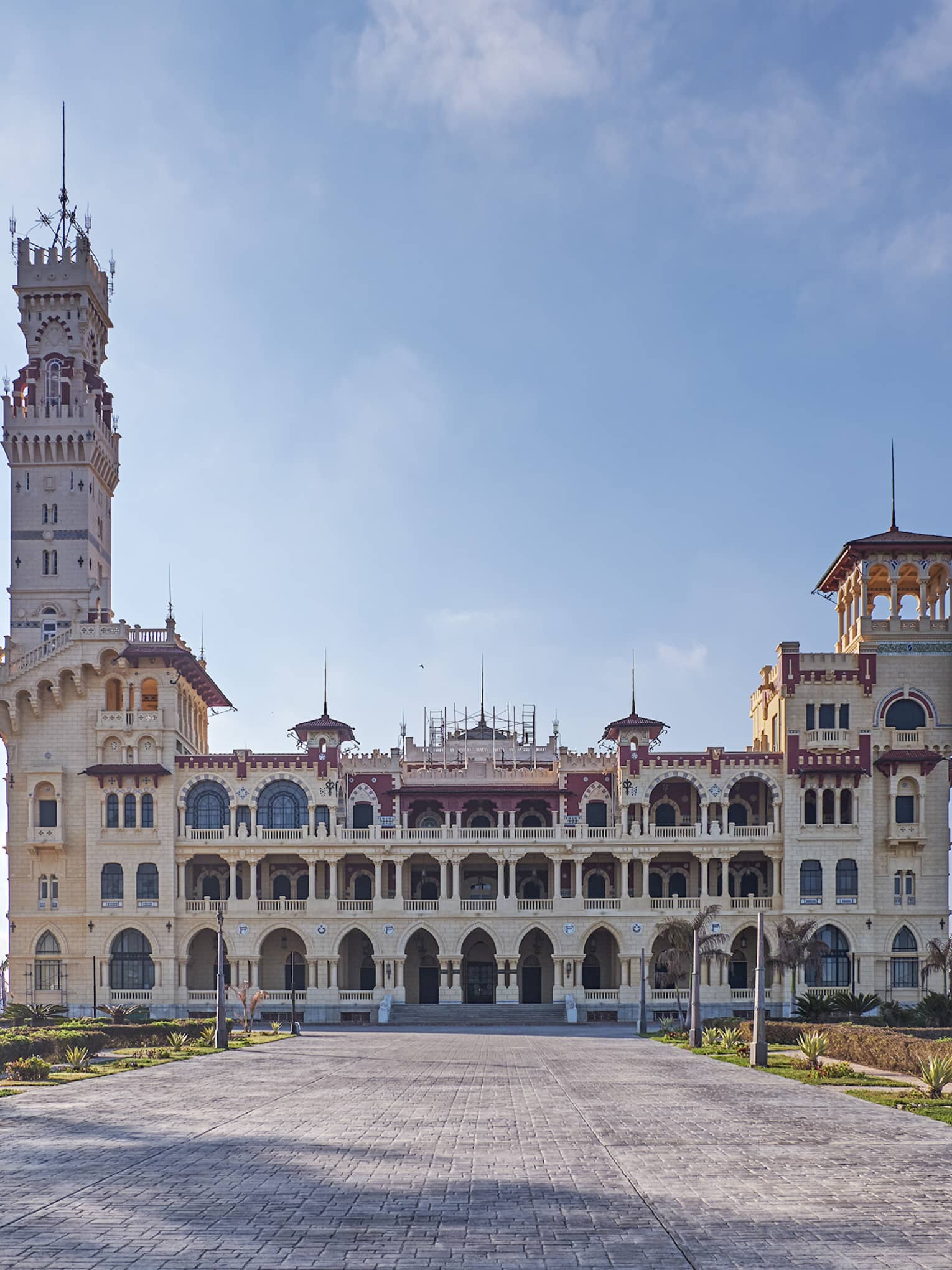 Montaza Palace and Gardens is a 19th-century summer residence built in 1892. Set within expansive seaside grounds, the palace blends Moorish architectural influences with distinctive Florentine detail.