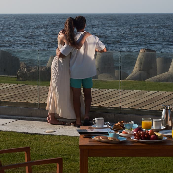 From the Pool Terrace Suite, our infinity-edge pool is just steps away from the living-room terrace, while the bedroom offers a quiet refuge that overlooks the sea. The outdoor terrace offers a seating area with direct access to pool deck – a convenient choice for families.