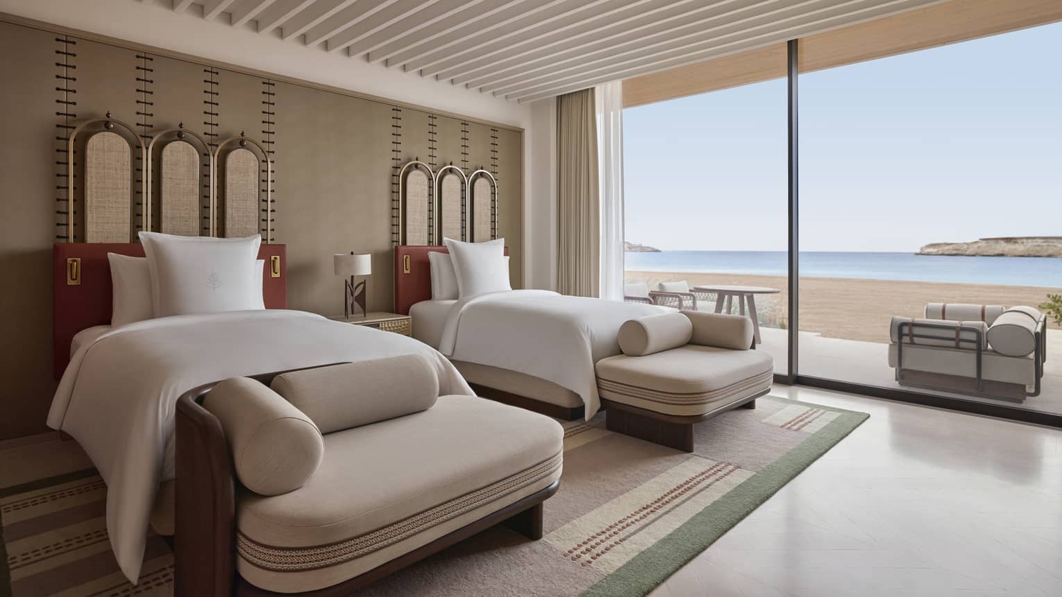 Our largest and most lavish villa, this four-bedroom beachfront showpiece offers the most impressive AMAALA experience. Entertain in the luxurious living and dining area, complete with kitchen and courtyard, then find privacy in the spacious bedrooms. Work out in the gym and find personal focus in the study. The terrace provides al fresco living and dining areas framing a large infinity pool.