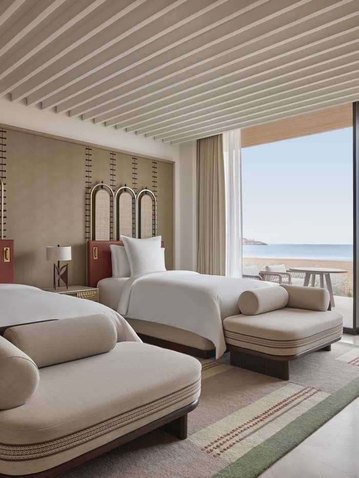 Right on the Red Sea beachfront and featuring its own private infinity pool, this stand-alone two-bedroom villa is the perfect place to bring together friends and family. Share relaxing times in the large living and dining room, where window walls open to the furnished terrace. The two bedrooms promise privacy and pampering.